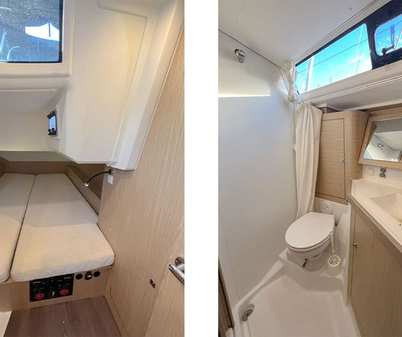 Sur une carène marine et bien stable, l'Oceanis 45 favorise la stabilité et augmente l'espace intérieur. Un large cockpit avec un double poste de barres, un plan de pont ouvert, des sièges spacieux et une plateforme de bain, assurent un plaisir de vivre à bord et une croisière en toute sécurité.
